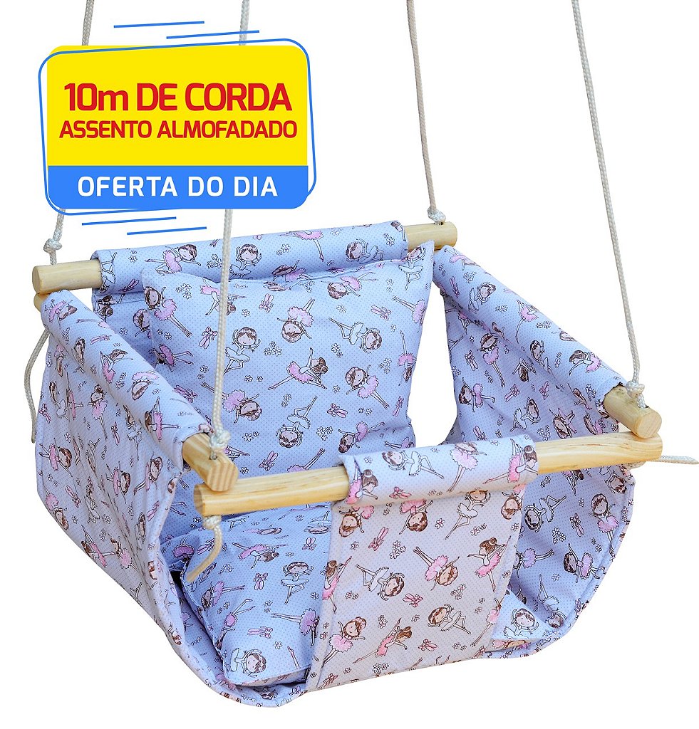 Balanço Infantil Tecido Madeira Corda Com Almofada Promoção - Cinza Bailarina